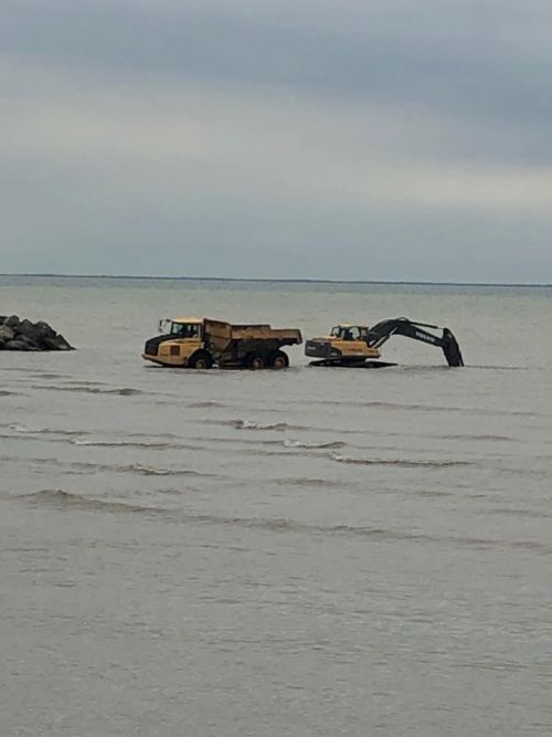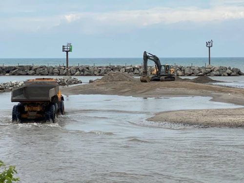“We used (the request for help) ‘as an opportunity for our Apprentices to take part in a training exercise,’” Swain said. “‘I don’t know how many (overall) man hours we put in, but let me put it this way: there were one-thousand truck loads taken out of there.’ They were digging up the sand that washes in and loading it into trucks, which transported it out of the area.”