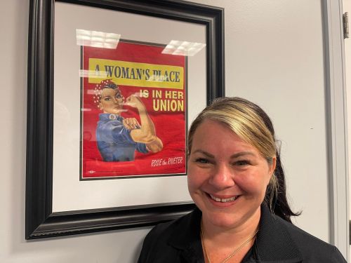 WNYLaborToday.com Editor’s Note: Pictured above, new Communications Workers of America (CWA) Local 1133 President Carrie Dilbert strikes a pose outside her Union’s Elk Street Headquarters in Buffalo. Speaking with WNYLaborToday.com, Dilbert - who said she learned the lessons of the Labor Movement while growing up in a Union Family, credited her Father for instilling the values of what a Union can do for a Worker while she was growing up: ‘He ‘truly is my inspiration - not only to be a genuine person, but to be a strong’ Union Advocate.” (WNYLaborToday.com Photo)