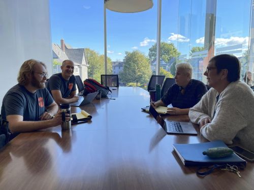 Absher (pictured below, in the front on the left) - an Associate Professor of Philosophy who’s been at D’Youville for 10 years now, was joined by: Laura Hechtel (pictured below, in front on the right), a Professor of Biology with 13 years at the University who also serves as the Union’s Chief Negotiator; Chris Patridge (pictured below, next to Absher), an Associate Professor of Chemistry with 10 years at D’Youville who also serves as the Union’s Contract Administrator; and AAUP At-Large Member Eli Finnegan (pictured below, next to Hechtel), an Associate Professor of English with 12 years at the University.
