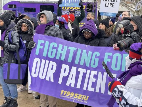 Despite freezing temperatures and fresh snow that had fallen earlier in the day, those who participated in the Buffalo action included the NAACP’s Buffalo Chapter, the Hispanic Heritage Council, 1199 Service Employees International Union (SEIU) United Healthcare Workers East, the Communication Workers of America (CWA), the Public Employees Federation (PEF), the New York State Nurses Association (NYSNA), the Western New York AFL-CIO Area Labor Federation (WNYALF), Healthcare Workers Rising, the New York Alliance for Healthcare Justice, and the Healthcare Education Project.
