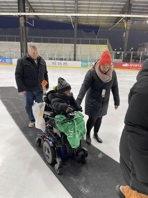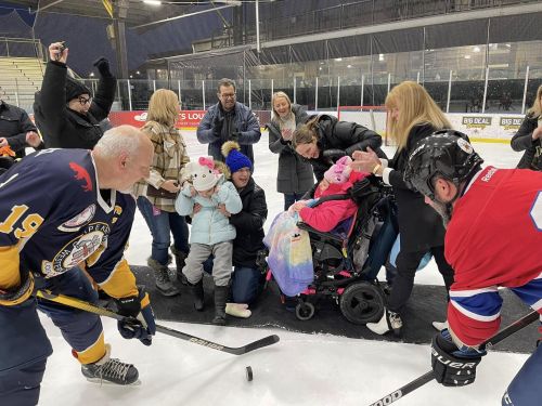 A ceremonial puck drop was held on the ice before the tournament began that involved several of HighPointe’s patients, youngsters who reveled with the opportunity to not only be out of the Unit with the help of their wheelchairs, but to take part in such a fun event where so many people gathered to support and enjoy - including Brown himself, who was in the middle of everything.