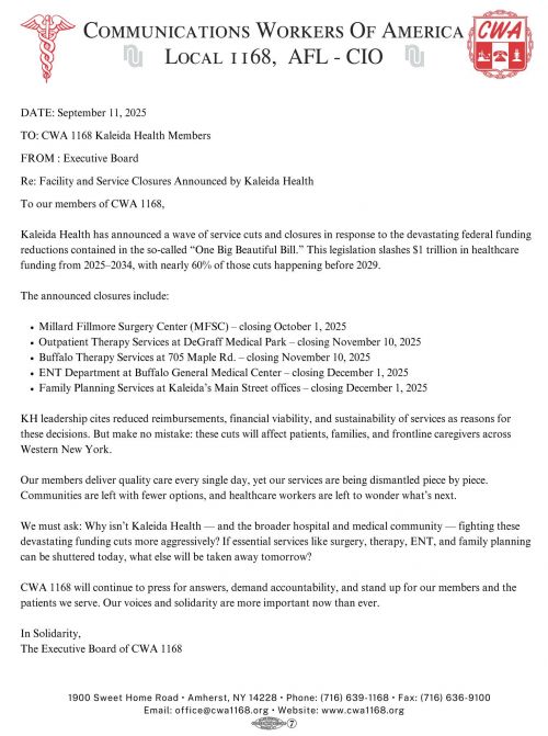 ‘Stop The Cuts - Now!:’ CWA Local 1168 Calls On Organized Labor, Health Care Workers, Patients & The WNY Community ‘To Mobilize Against’ Trump’s ‘One Big Beautiful Bill That Will Slash $1 Trillion’ In ‘Needed’ Federal Health Care Funding