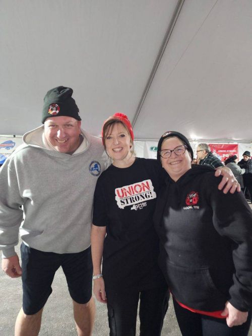 “It ‘just goes to show you the power of Unions,’” Western New York AFL-CIO Area Labor Federation (WNYALF) President Denise Abbott (Pictured Below - In The Middle Between IBEW Local 2104's Trevor Ganshaw & UWGN Labor Liaison Beth Pyskaty), who made the plunge herself, told WNYLaborToday.com afterward. “It’s ‘hard to put into words.’ It’s ‘really unbelievable.’ ‘What impressed me is that people came out, even though this is not an easy thing to do.’ ‘They might hate me afterward (for encouraging Labor to participate in the event), but there was a lot of excitement and camaraderie - all for a good and worthwhile cause.’ There’s an ‘understanding (in the Labor Movement) that it is up to us to make the lives of those in our community easier.’”